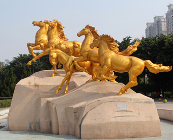 還有一種銅馬雕塑比較特殊,具有風水的作用,馬雖然不能化煞,卻有振奮人心的作用,由于馬的本性豪放不羈,所以擺設銅馬雕塑可以讓人有振作奮發的作用。中國人對馬的感情也是非常深厚的,賦予馬很多人類的情感,深受國人的喜歡,以致在中國歷代文獻、典故、藝術品中,以馬為題材的裝飾品越來越多。