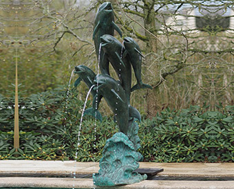 優藝園林雕塑有限公司提供設計新穎,質量可靠的銅噴泉雕塑。我們的銅噴泉雕塑是以海洋動物海豚為主題制作的,海豚以靈活的動作追逐嬉戲,組成一組可愛有漂亮的銅海豚噴泉雕像。